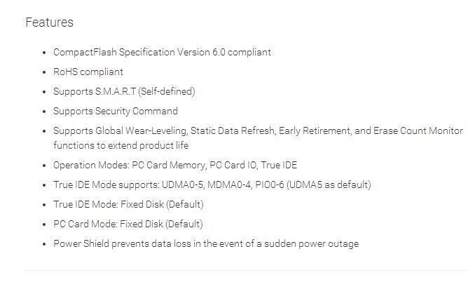CompactFlash Specification Version 6.0 is compatible